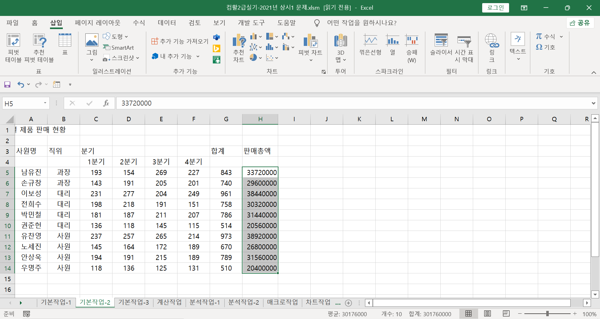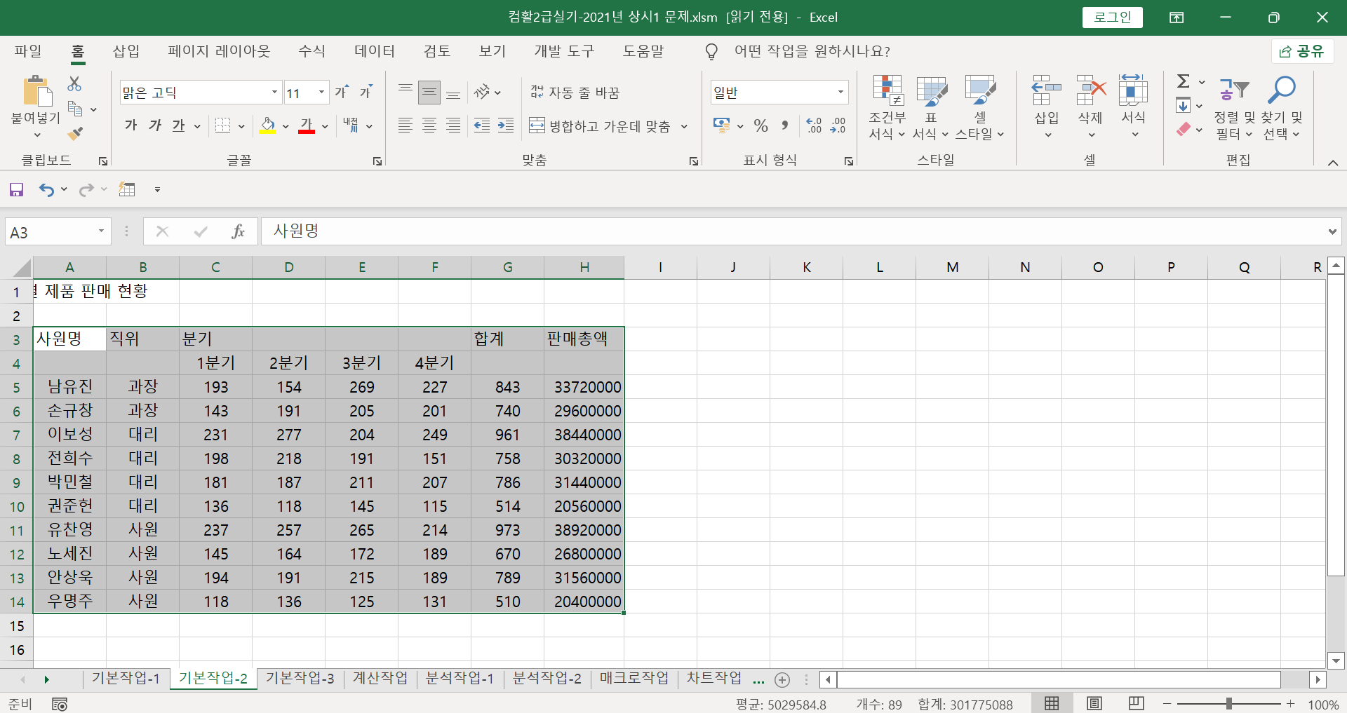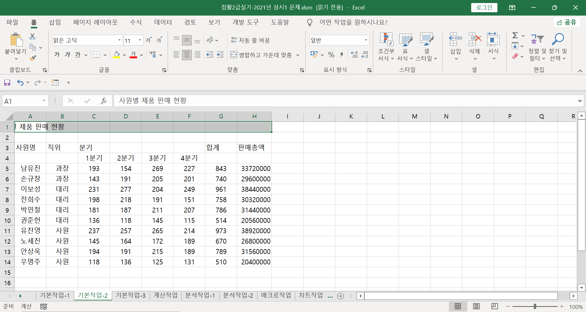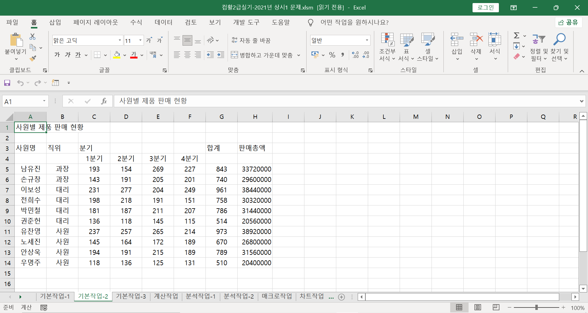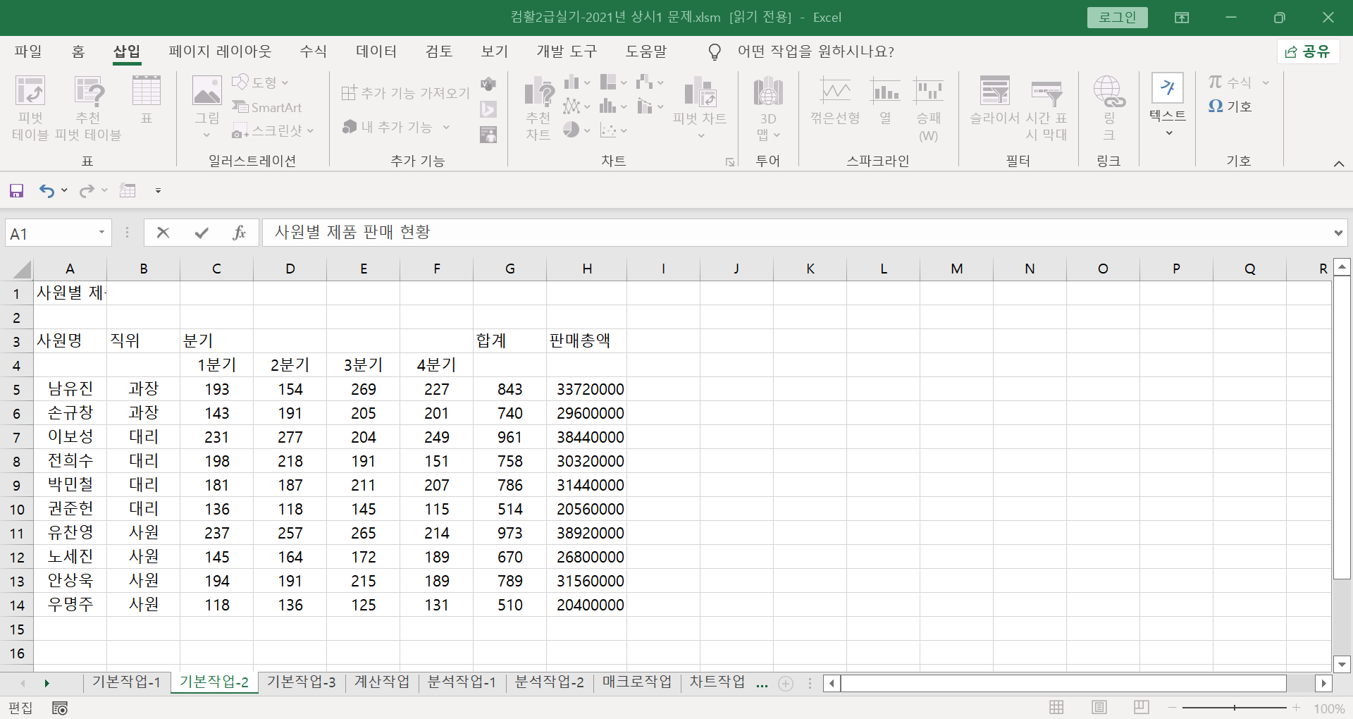 컴활 실기문제를 풀때 맨 처음 마주하는 것은 기본작업 문제입니다. 문자 그대로 기본적인(?) 작업을 테스트하는 항목으로 다른 항목에 비해 쉽습니다. 여기서는 컴활 2급의 기본작업을 다뤄보겠습니다.