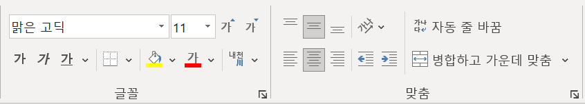 위 문제의 해결방법은 홈에서 찾을 수 있습니다. 홈에 맞춤, 글꼴 박스를 확인하면 됩니다.